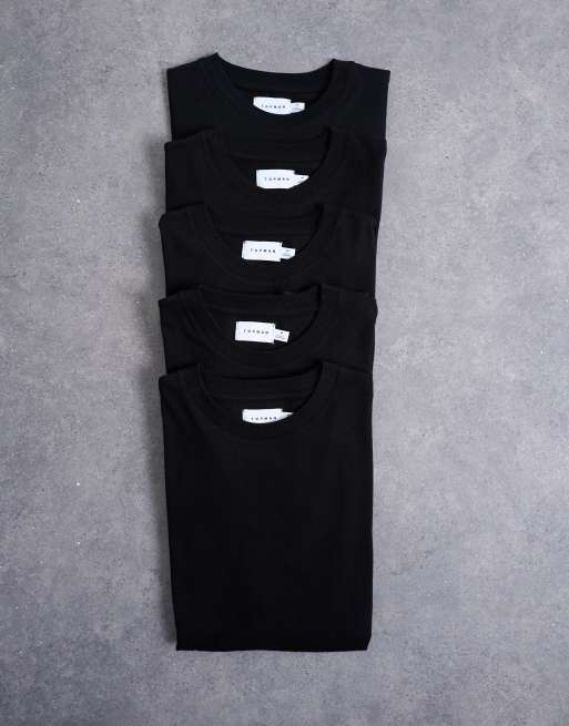 Topman - Pakke med 5 sorte T-shirts i klassisk pasform