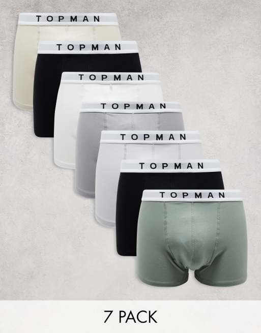 Topman - Pakke med 7 par boksershorts i sort/hvid/grå/lysegrå/beige/grøn med hvid linning