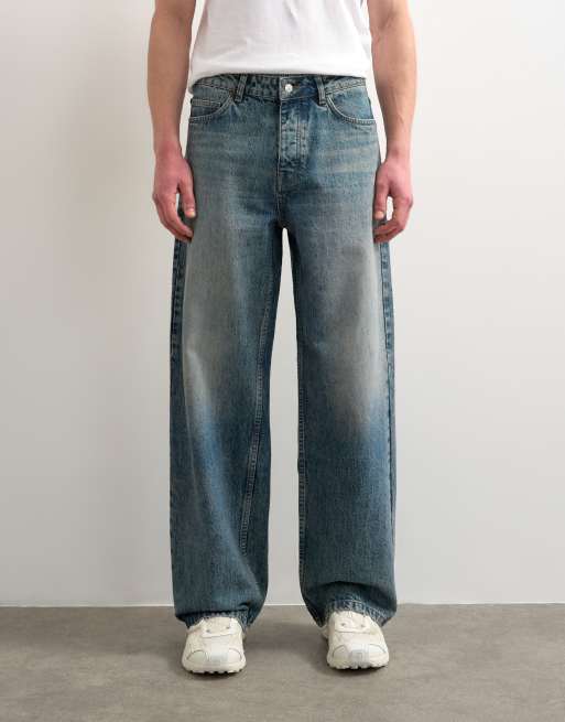 Topman - Posede stive jeans med cirkulært design i mellemvasket farve