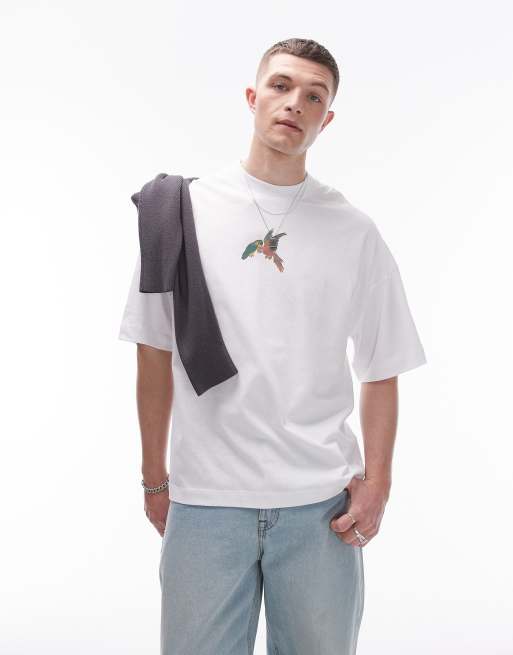 Topman - Premium - Ekstremt oversized T-shirt med papegøjeprint foran og bagpå i hvid