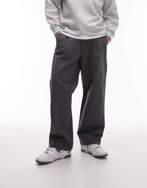 Topman - Premium - Koksgrå bukser med vide ben og paperbag-talje
