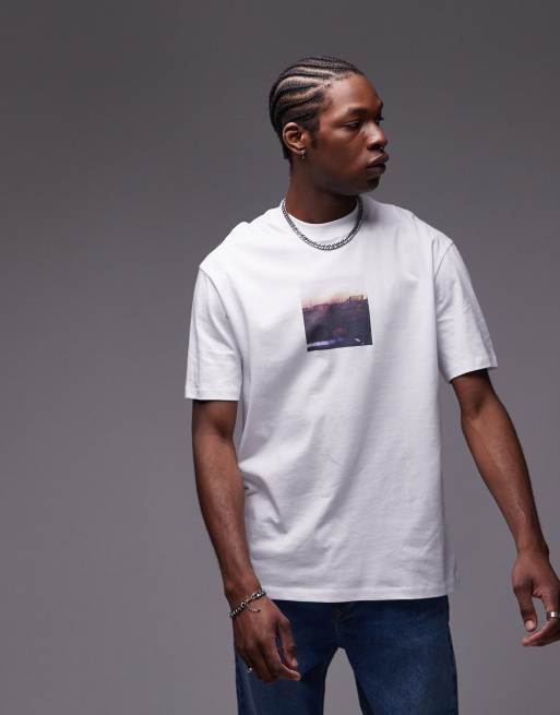 Topman - Premium - Oversized T-shirt med påsyet print med Hackneys skyline i hvid
