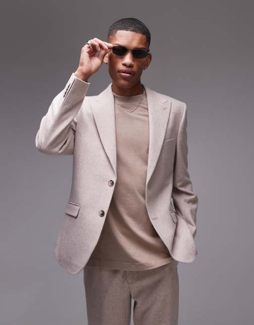 Topman - Premium - Smal og beige habitjakke i uldblanding
