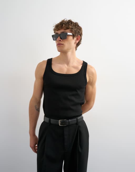 Topman - Premium - Sort ribstrikket overdel med firkantet hals
