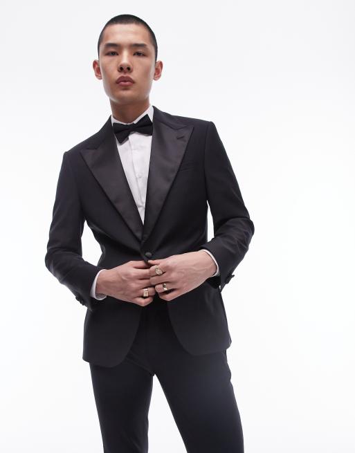 Topman - Premium - Sort skinny-habitjakke i uldrigt stof