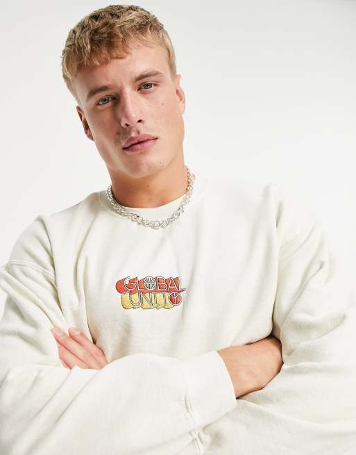 Topman - Råhvid sweatshirt med 'Global Unity'-print