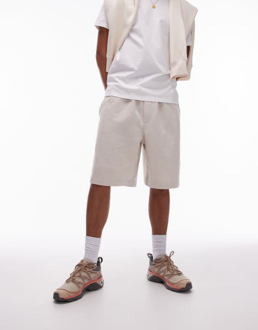 Topman - Shorts i ecrufarvet jersey i hørblanding med oversized fit