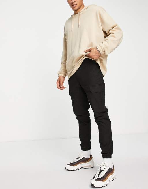 Topman - Skinny-cargobukser i forvasket sort bomuld