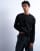 Topman - Sort afslappet cropped T-shirt med lange ærmer