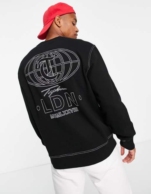 Topman - Sort sweatshirt med signatur og 'worldwide'-logo
