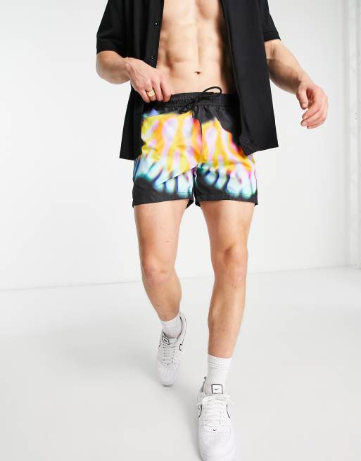 Topman - Sorte batikfarvede badeshorts