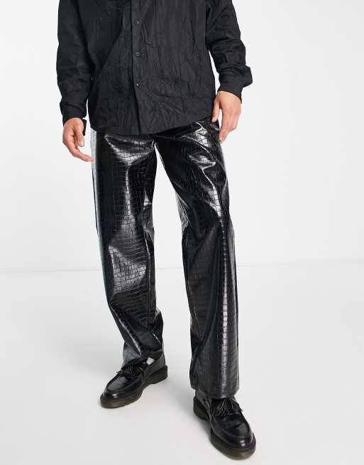 Topman - Sorte bukser med vidde i imiteret læder med krokodilledesign