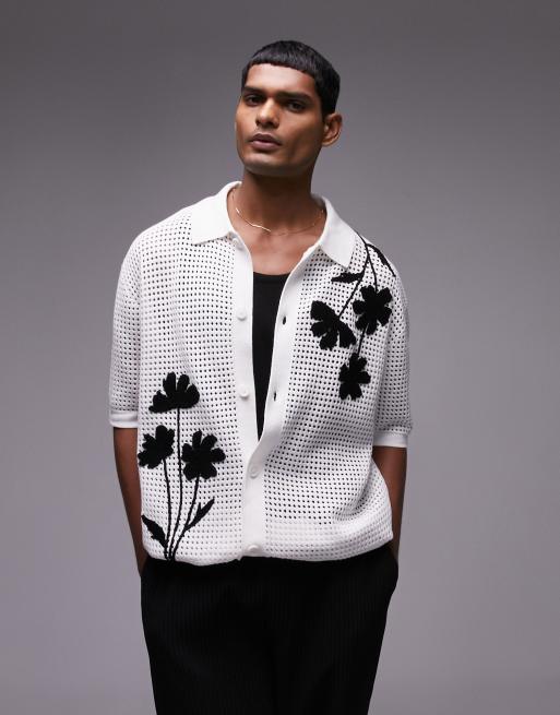 Topman - Strikket trøje med gennemgående knapper, reverskrave og sort applikation i hvid