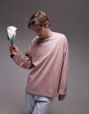 Topman - Støvet lyserød, oversized T-shirt i tungt stof og med lange ærmer