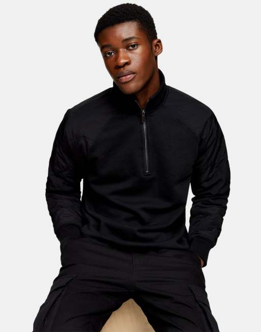 Topman - Sweatshirt i sort med vatterede raglanærmer og lynlås i halv længde