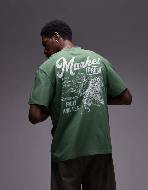 Topman - Vasket grøn T-shirt med 'Market'-print foran og bagpå i afslappet pasform