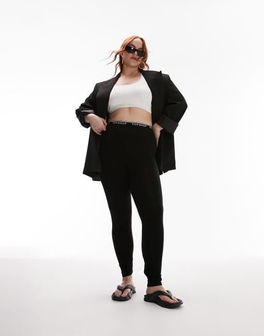 Topshop Curve - Sorte leggings med logo-elastik