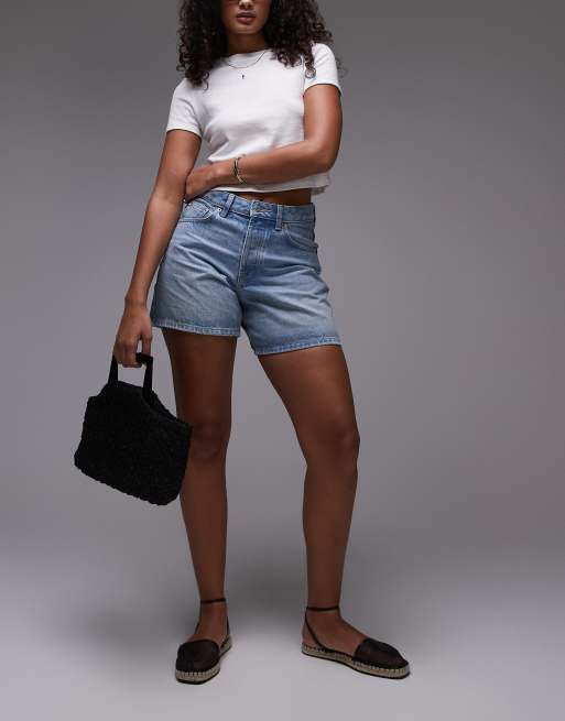 Topshop Hourglass - Editor - Afblegede blå denimshorts