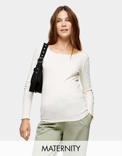Topshop Maternity - Hvid langærmet T-shirt med bølgekant