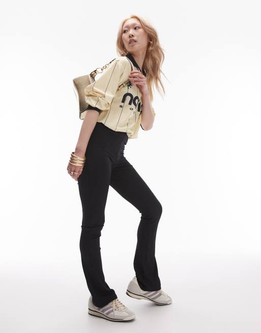Topshop Petite - Ribstrikkede skinny-bukser med svaj i sort