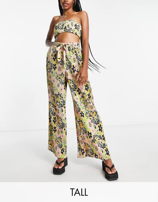 Topshop Tall - 60'er-strandbukser med plissering og vide ben i multifarvet blomstermønster
