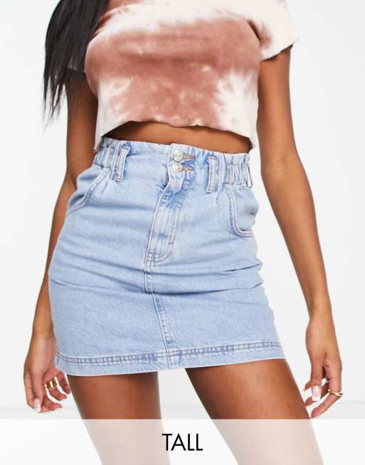 Topshop Tall - Afbleget denim-nederdel med paperbag-waist