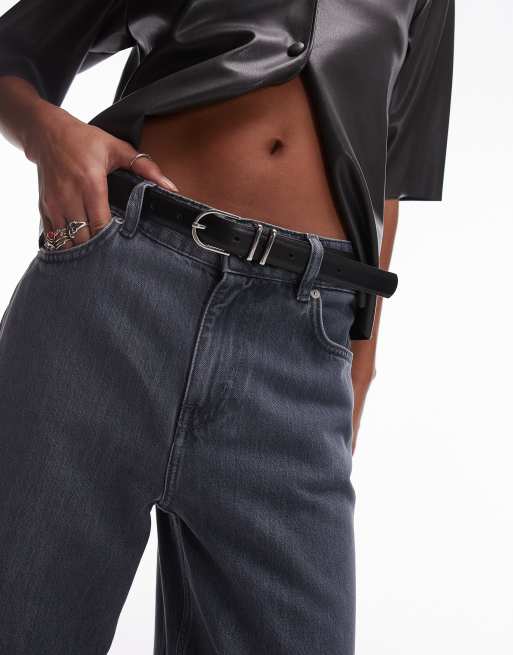 Topshop - Beau - Sort smalt læderbælte
