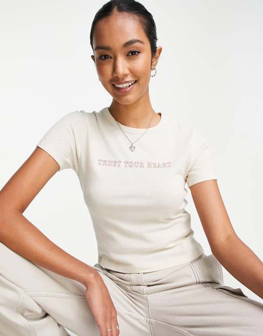 Topshop - Beige baby-T-shirt med 'Trust your heart'-print