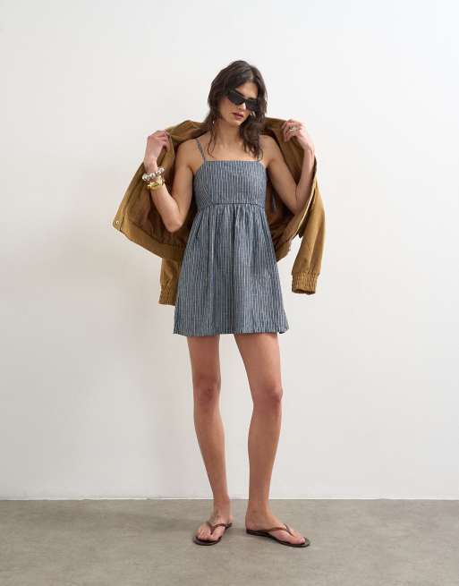 Topshop - Blå denimkjole med åben ryg og smalle stropper og striber