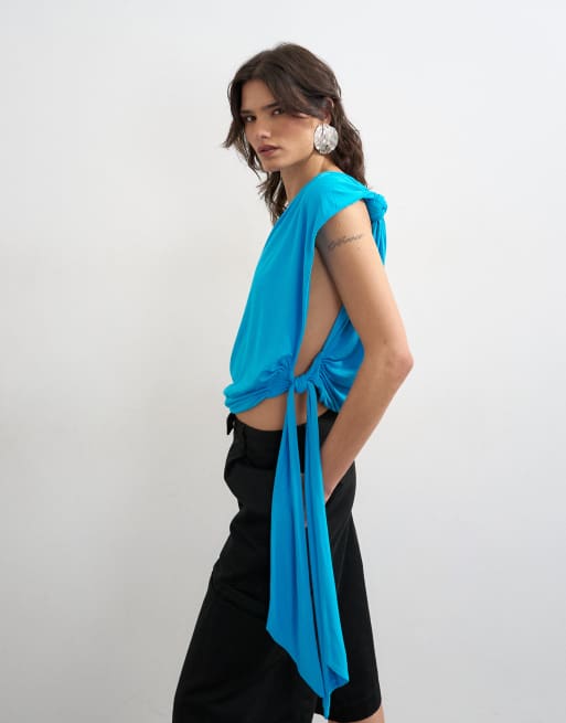 Topshop - Blå oneshoulder-top med knudedetalje