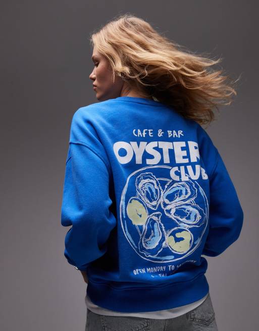 Topshop - Blå sweatshirt med 'Oyster Club'-grafik