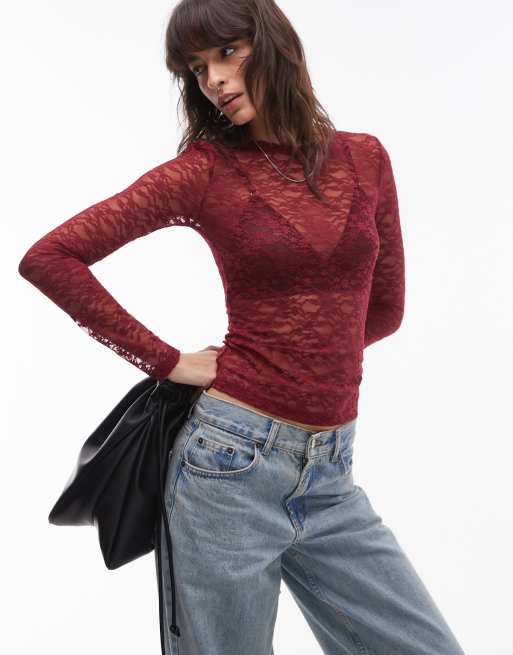 Topshop - Bordeaux blondetop med lange ærmer