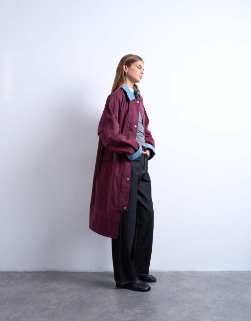 Topshop - Bordeaux longline skjortejakke med kontrastfarvet krave
