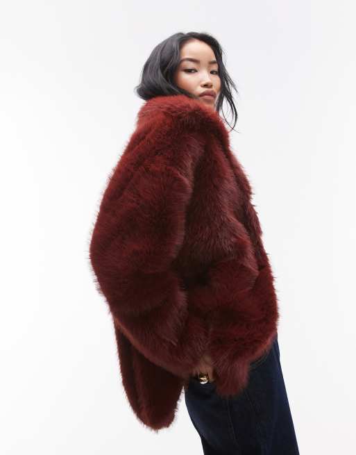 Topshop - Bordeaux midifrakke i imiteret pels