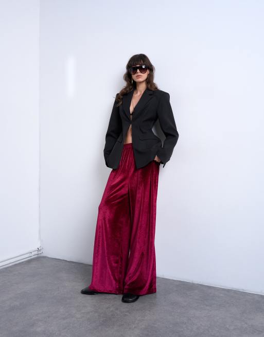 Topshop - Bordeaux pull-on-bukser med vide ben i velour