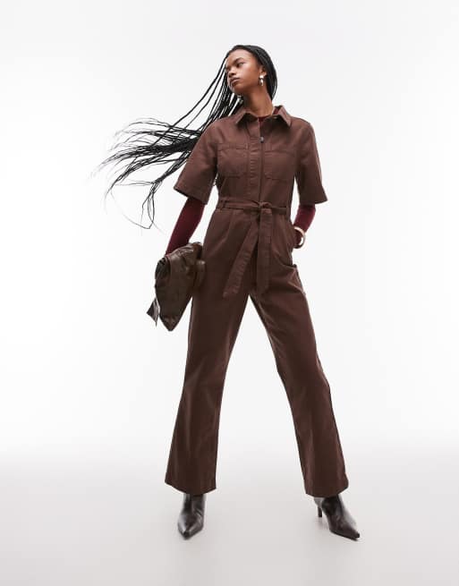 Topshop - Bronzefarvet jumpsuit med korte ærmer