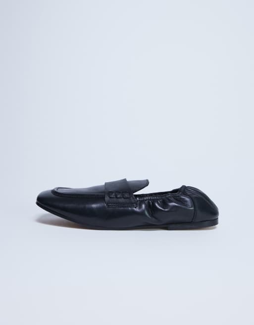 Topshop - Brooks - Sorte loafers med rynket hæl i ægte læder