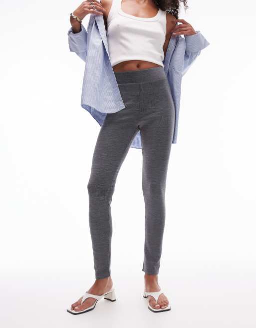 Topshop - Børstede leggings i gråmeleret ribstrik