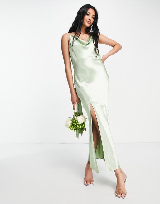 Topshop - Brudepiger - Salviegrøn slip-kjole med bindebånd på ryggen i satin