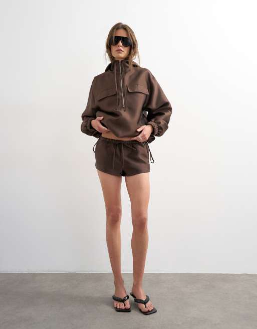 Topshop - Brune løbeshorts i satin-twill - Del af sæt