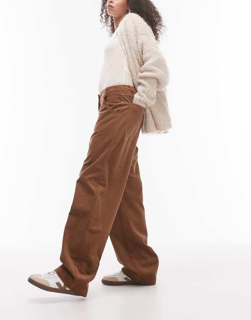 Topshop - Brune, skræddersyede og afslappede bukser i jernbanefløjl