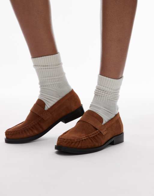 Topshop - Carey - Gyldenbrune loafers med rynkedetaljer i ruskind