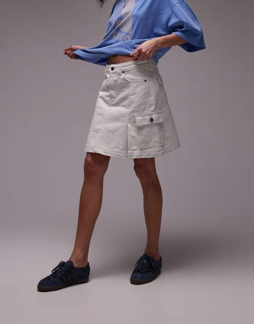 Topshop - Cargonederdel i beskidt hvid denim