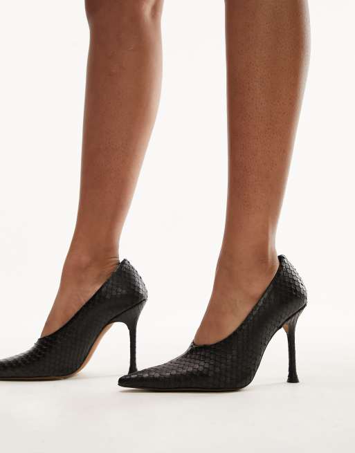 Topshop - Cherry - Sorte pumps med høj vamp-hæl i premium-læder