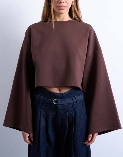 Topshop - Chokoladebrun top med lange brede ærmer og interlock-syninger