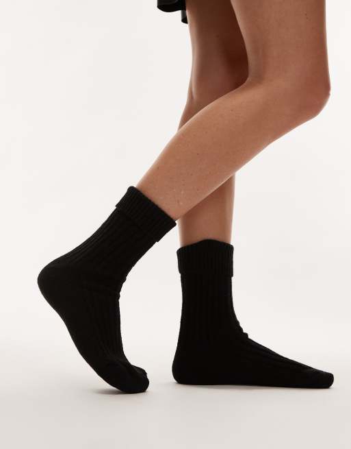 Topshop - Chunky ribstrikkede sokker i sort med opsmøgning
