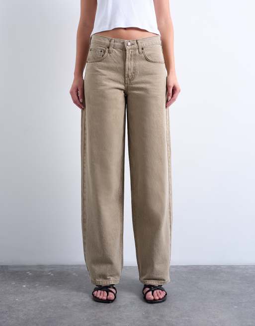 Topshop - Cinch - Lysebrune lavtaljede afslappede jeans