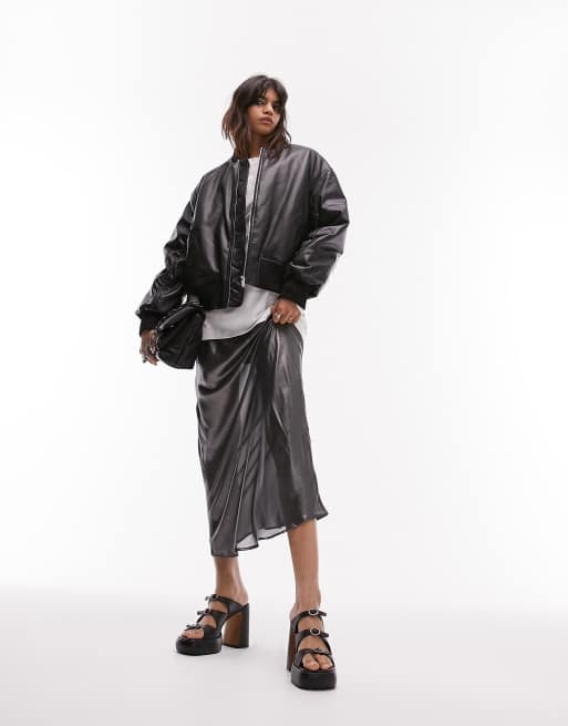 Topshop - Cropped bomber-jakke i sort, imiteret læder
