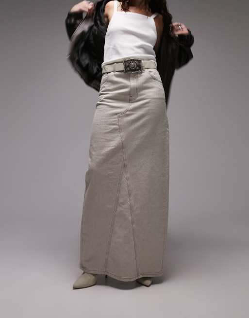 Topshop - Ecrufarvet maxinederdel i denim med lige pasform