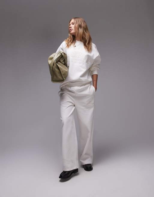 Topshop - Ecrufarvet sweatshirt med "Stockholm"-grafik - Del af sæt
